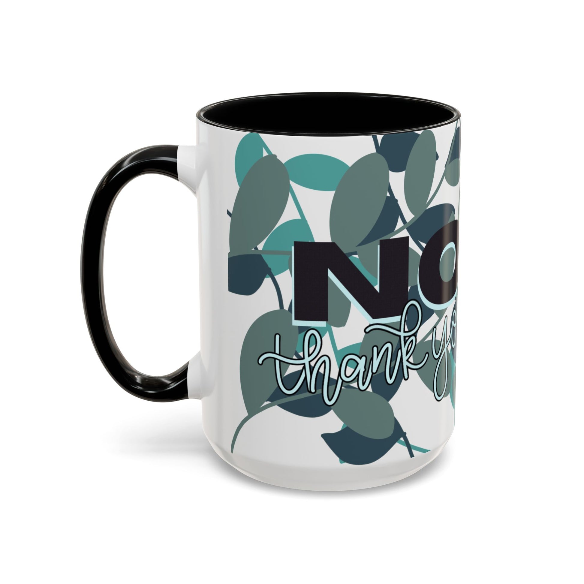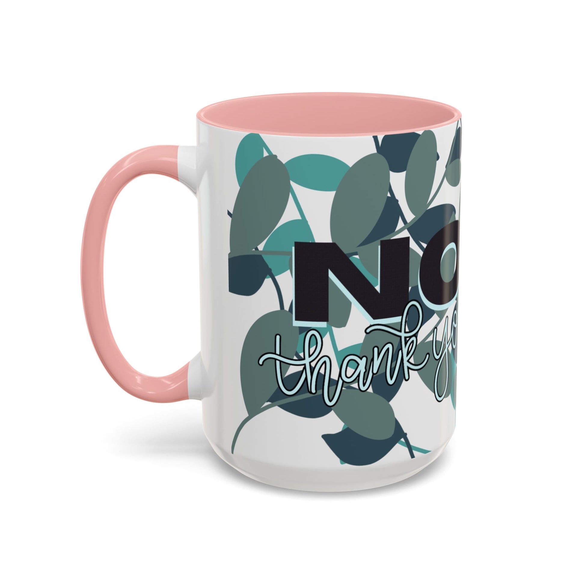 Sometimes the most powerful thing you can say is a gentle, cheerful "no thank you"—and this mug says it for you with every sip.